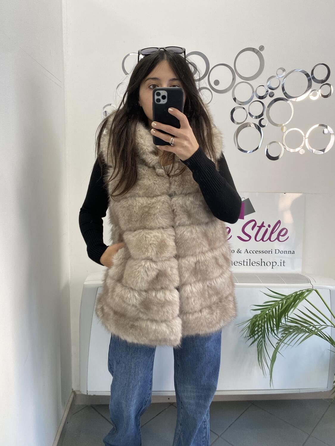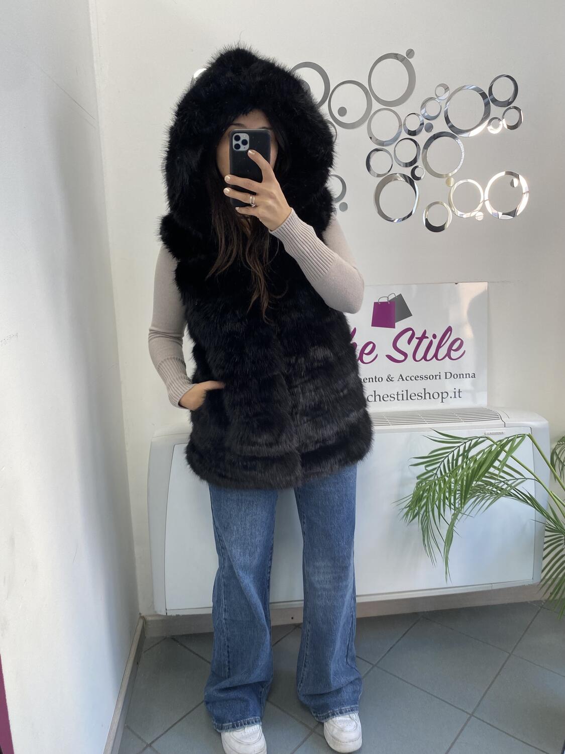 NOVITÀ Eco pelliccia smanicata con cappuccio