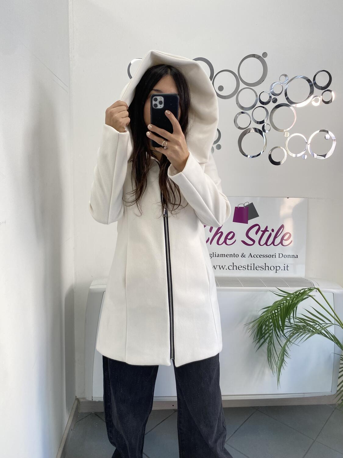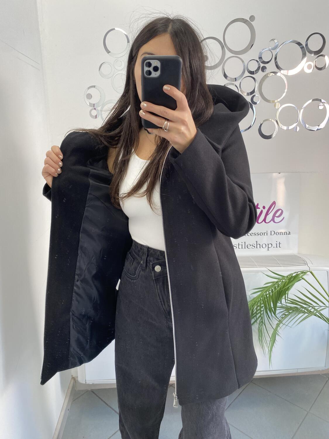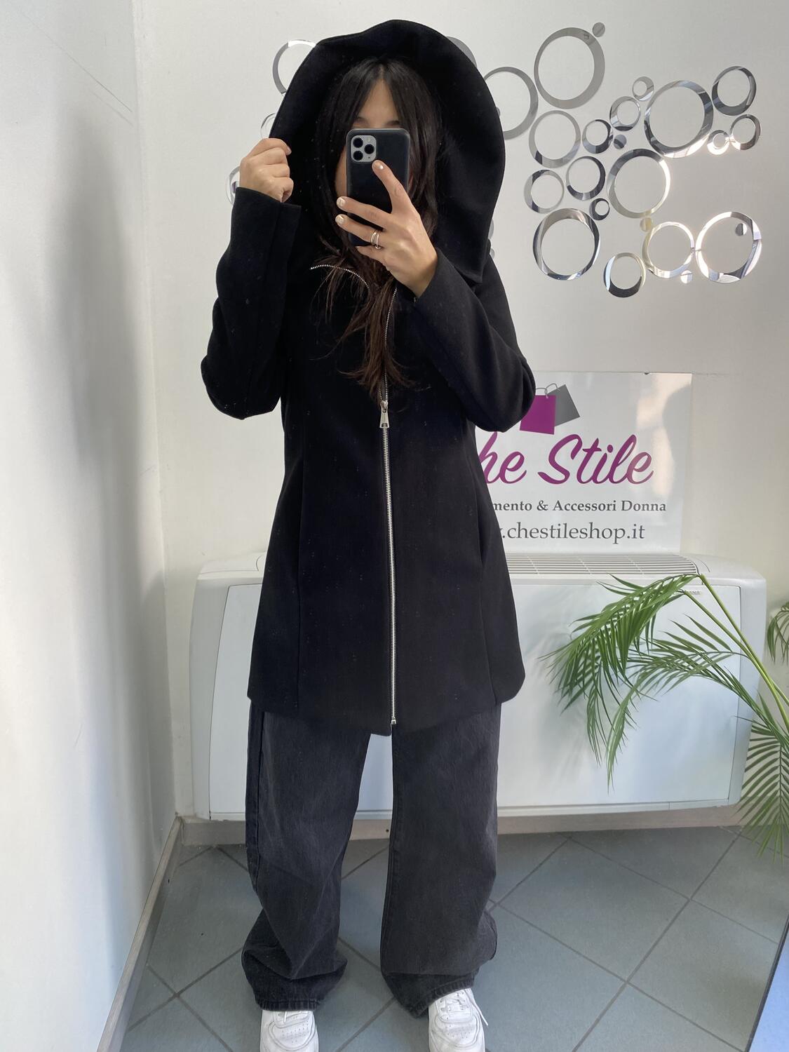 NOVITÀ Cappotto media lunghezza con zip e cappuccio