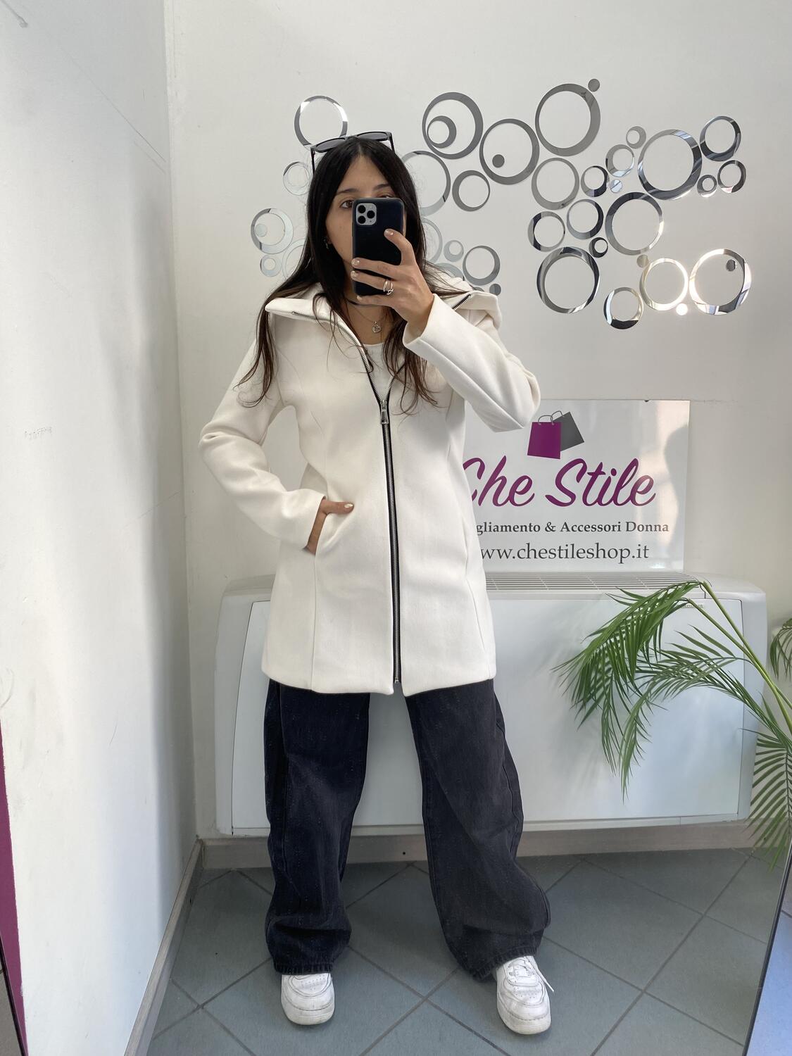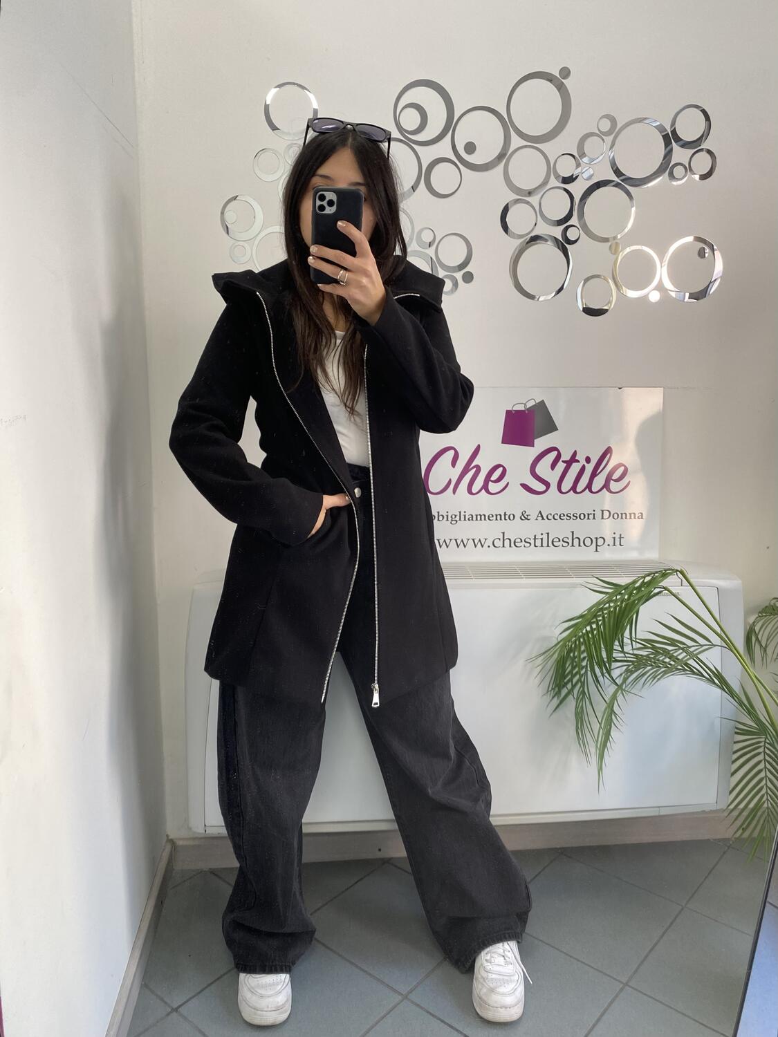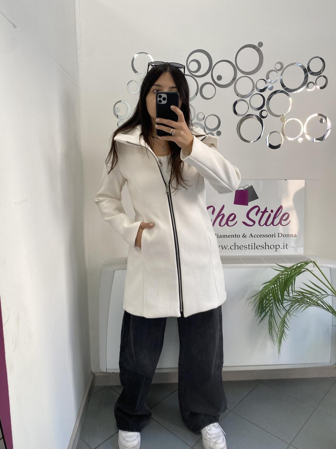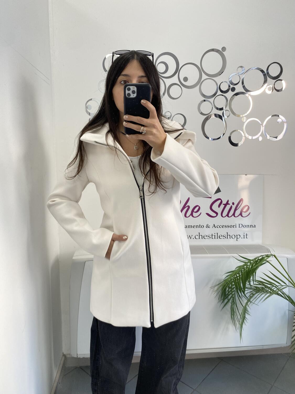 NOVITÀ Cappotto media lunghezza con zip e cappuccio
