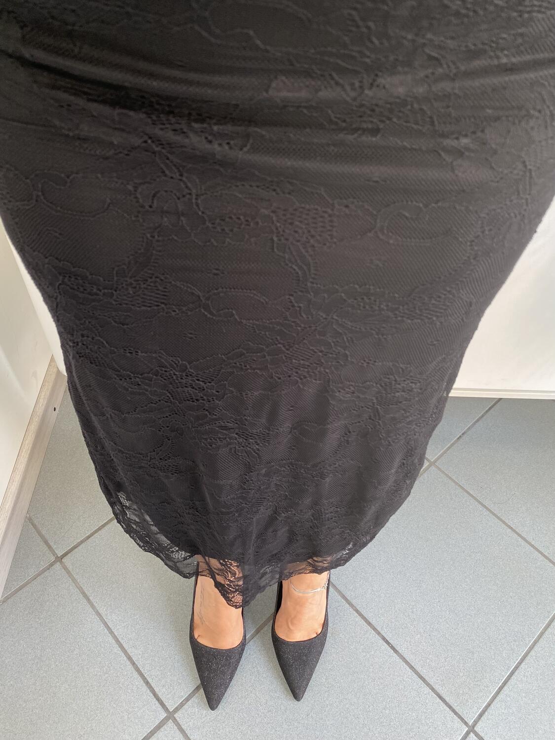 Longuette in pizzo con fodera interna. Taglia unica, elastico in vita, veste XS-S-M. Made in Italy. Composizione: 95% poliestere, 5% elastan.