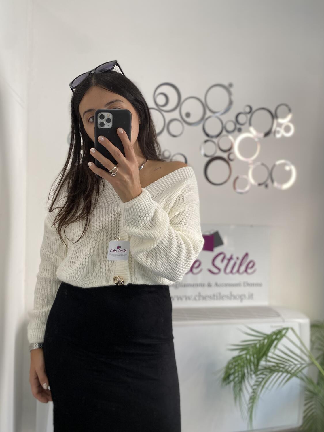 Eleonora è alta 160 cm, ha una seconda di seno e veste la taglia 42.