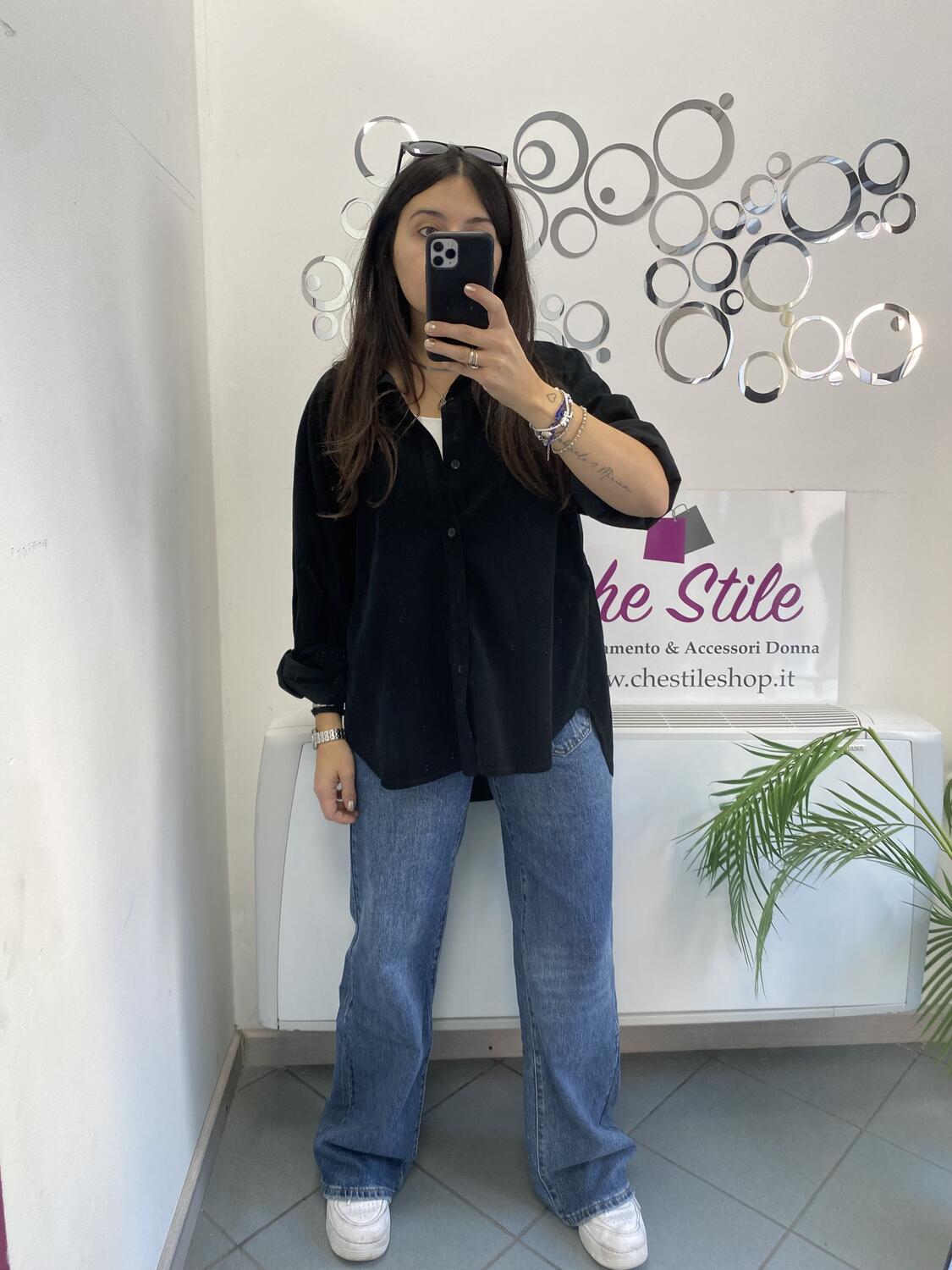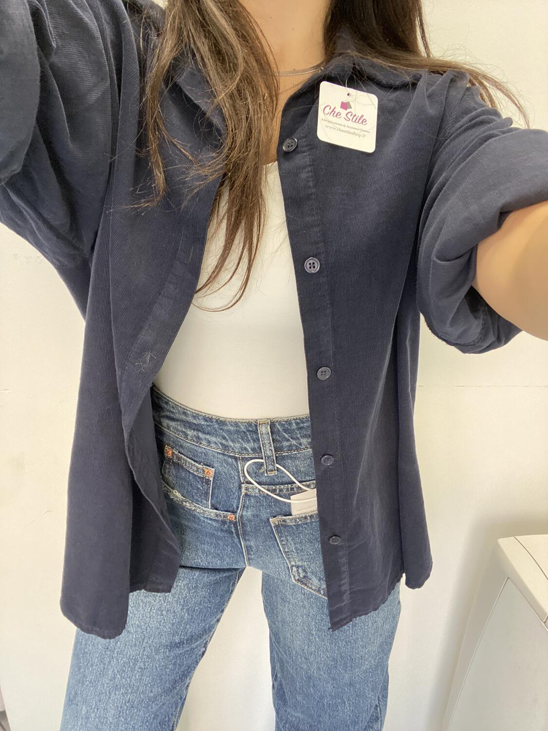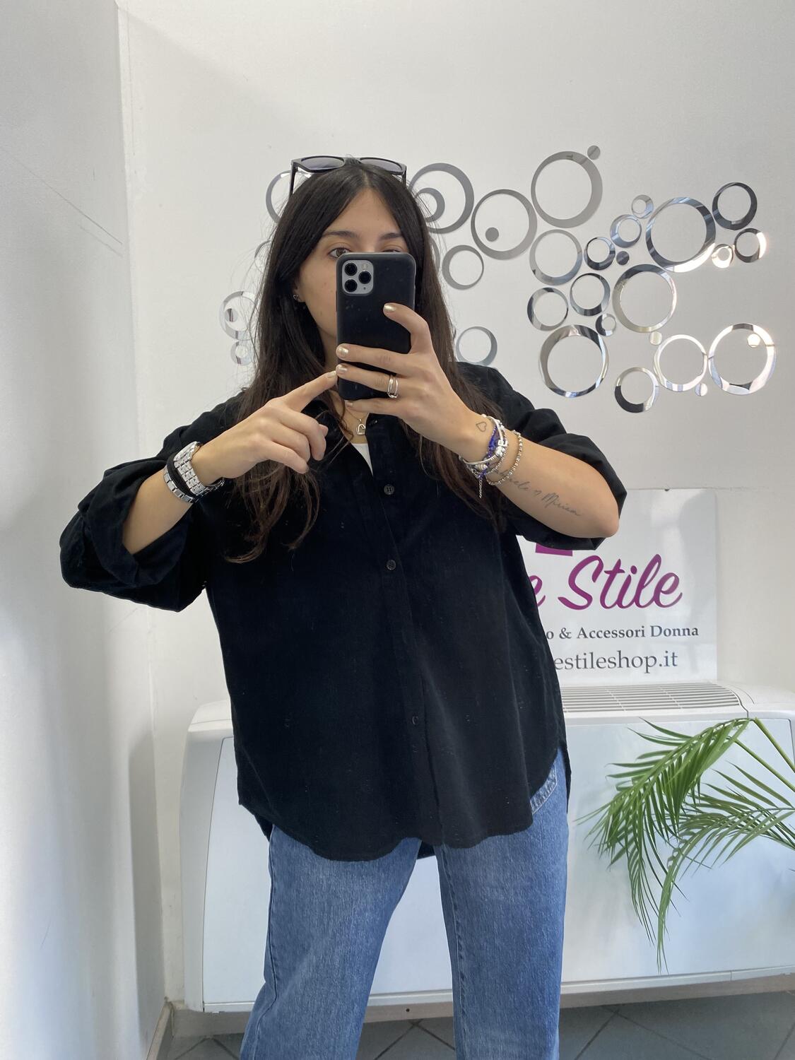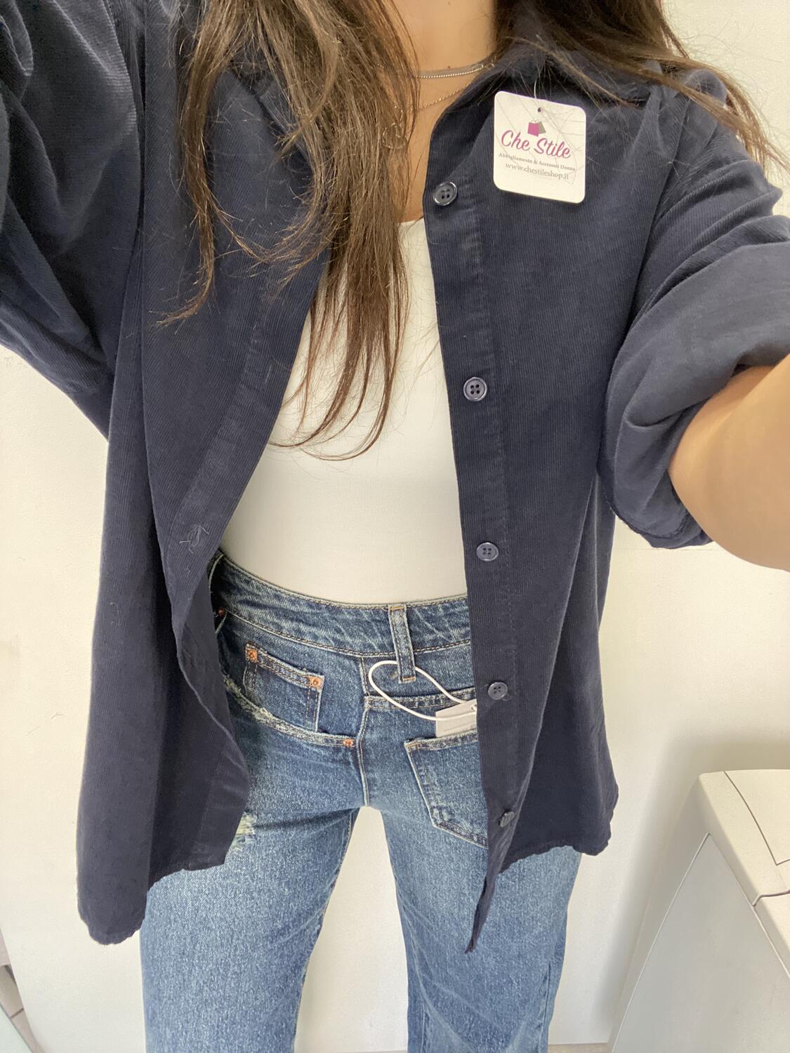 Camiciona a manica lunga a costine sottili in tessuto tipo velluto (leggero). Taglia unica, veste dalla 38 alla 48. Made in Italy. Composizione:100% cotone.