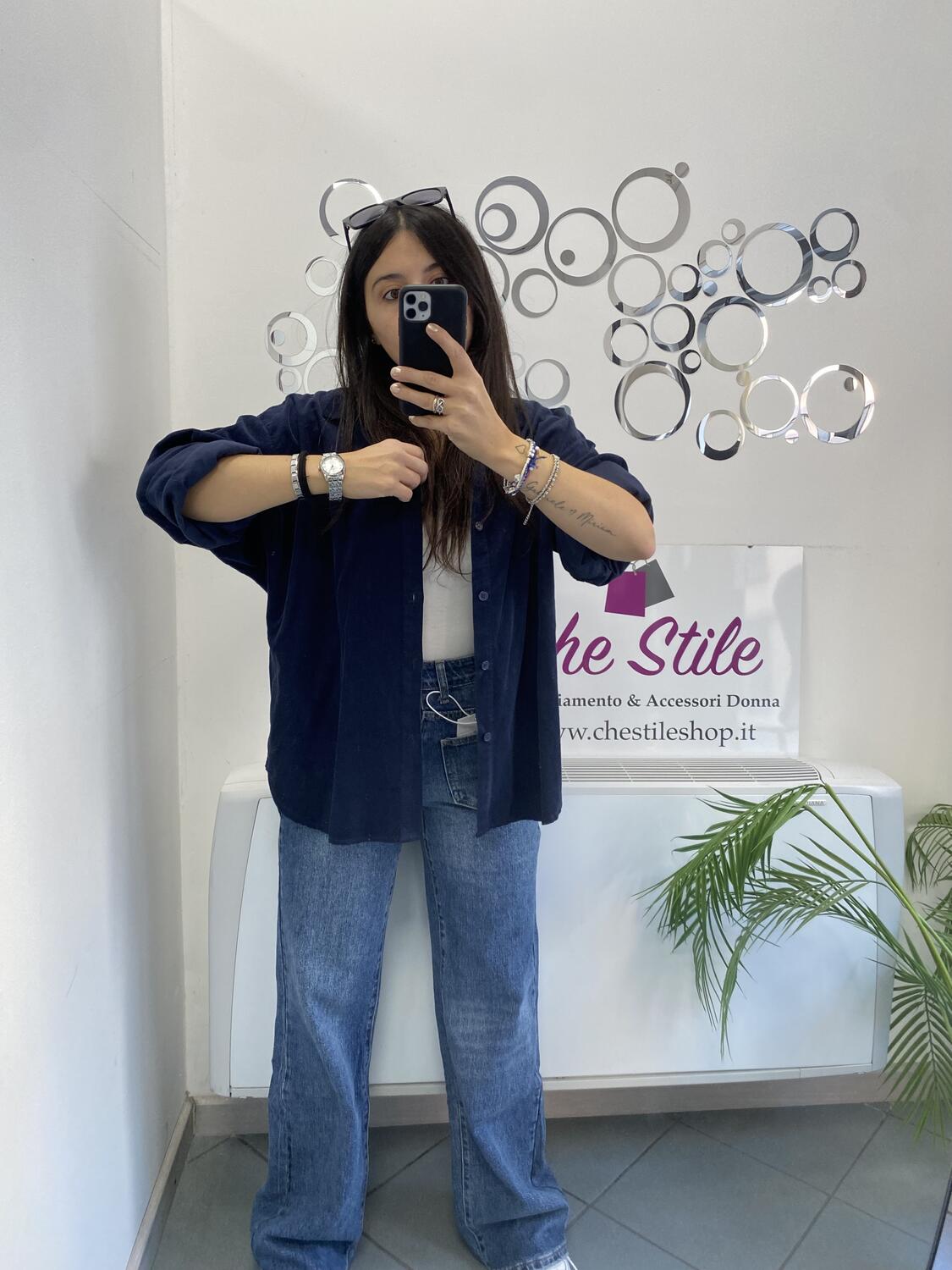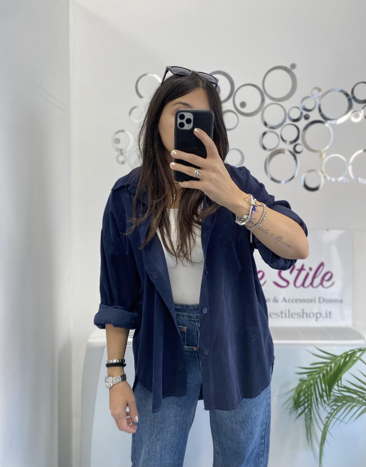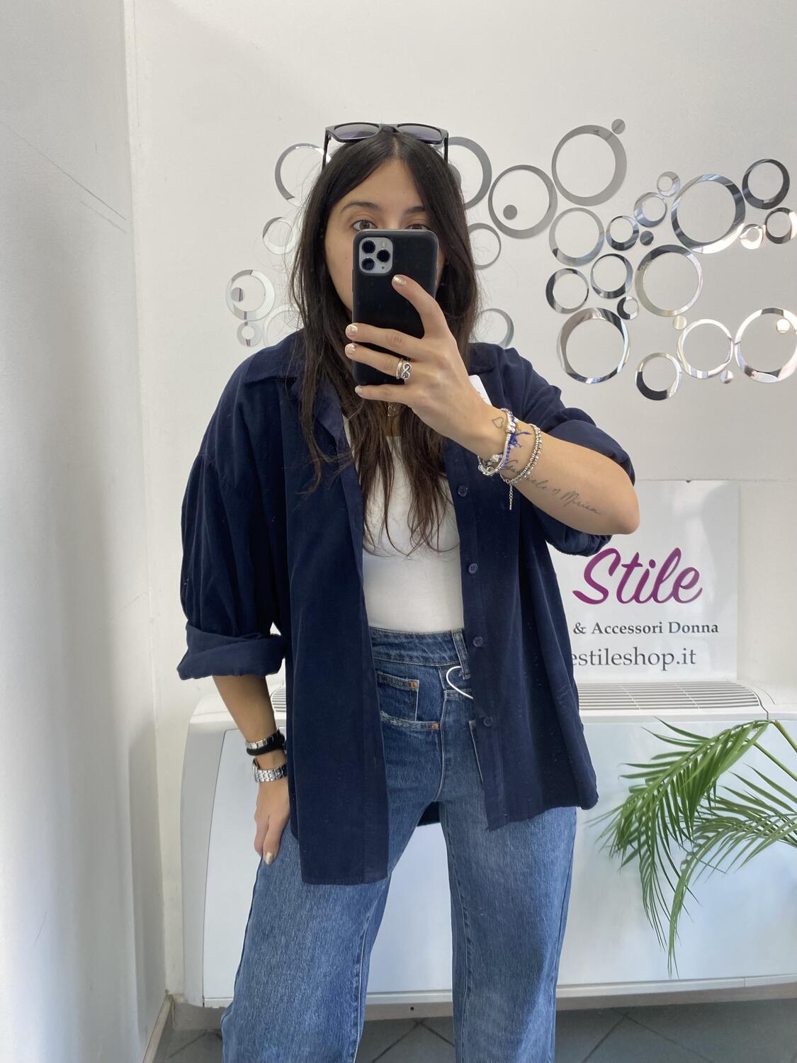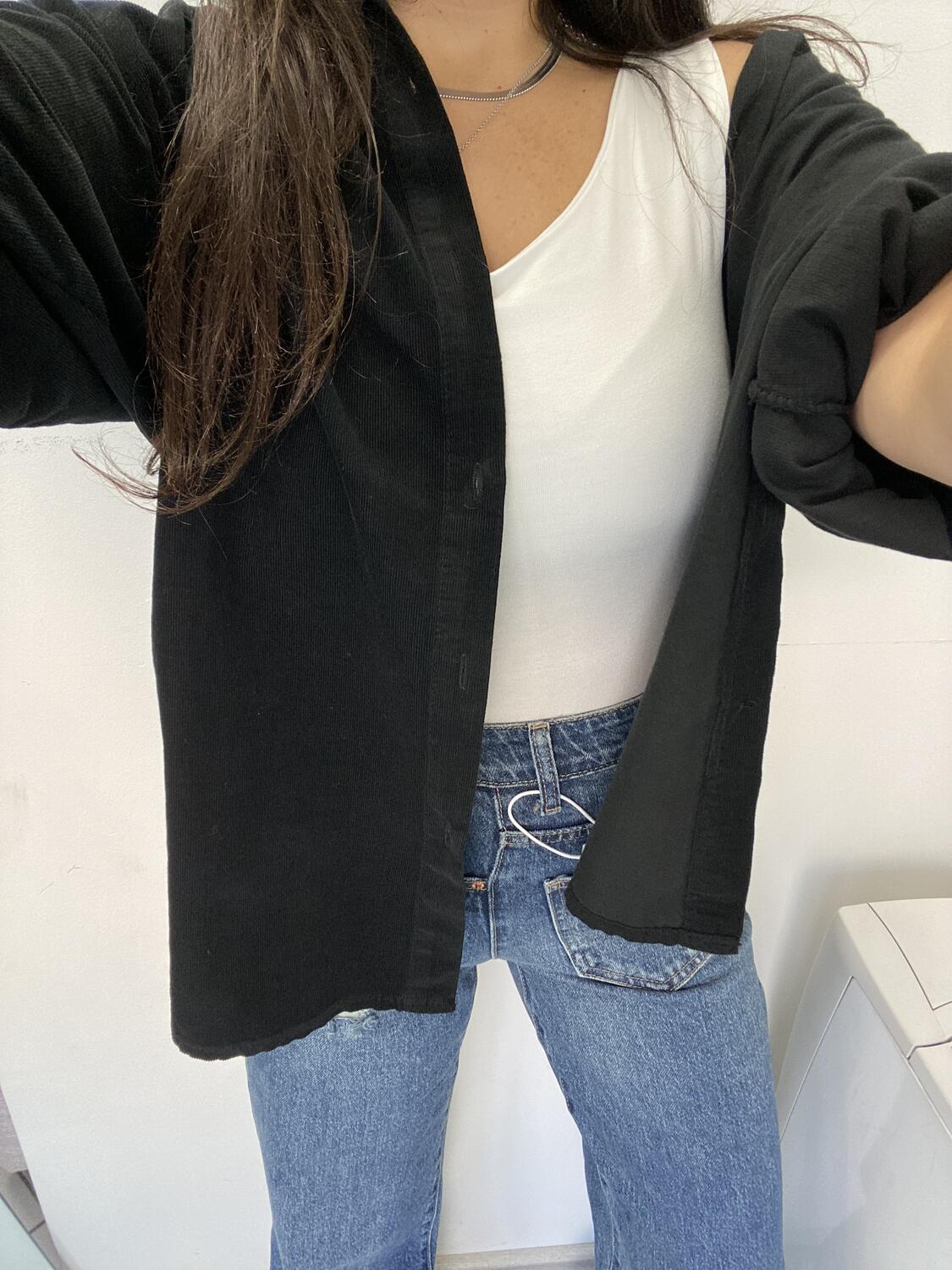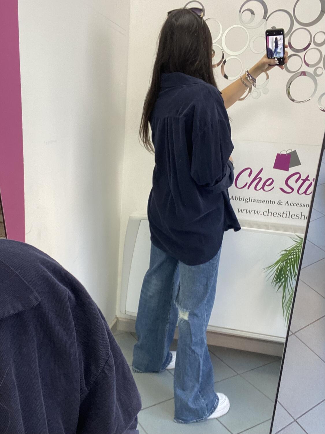 Camiciona a manica lunga a costine sottili in tessuto tipo velluto (leggero). Taglia unica, veste dalla 38 alla 48. Made in Italy. Composizione:100% cotone.