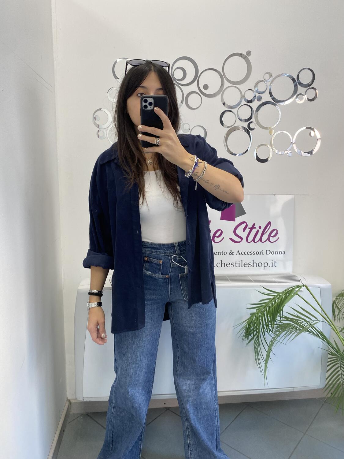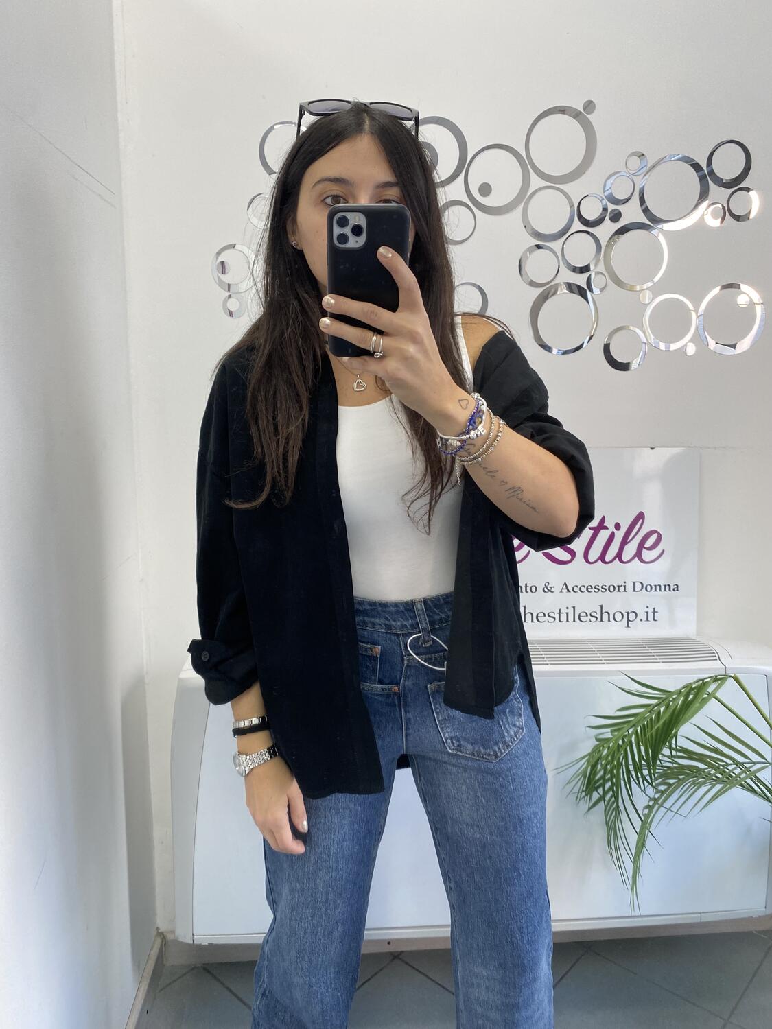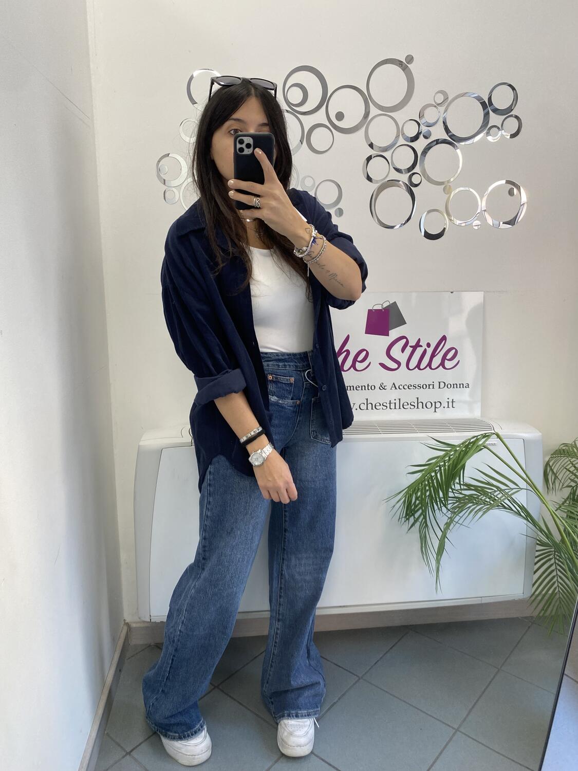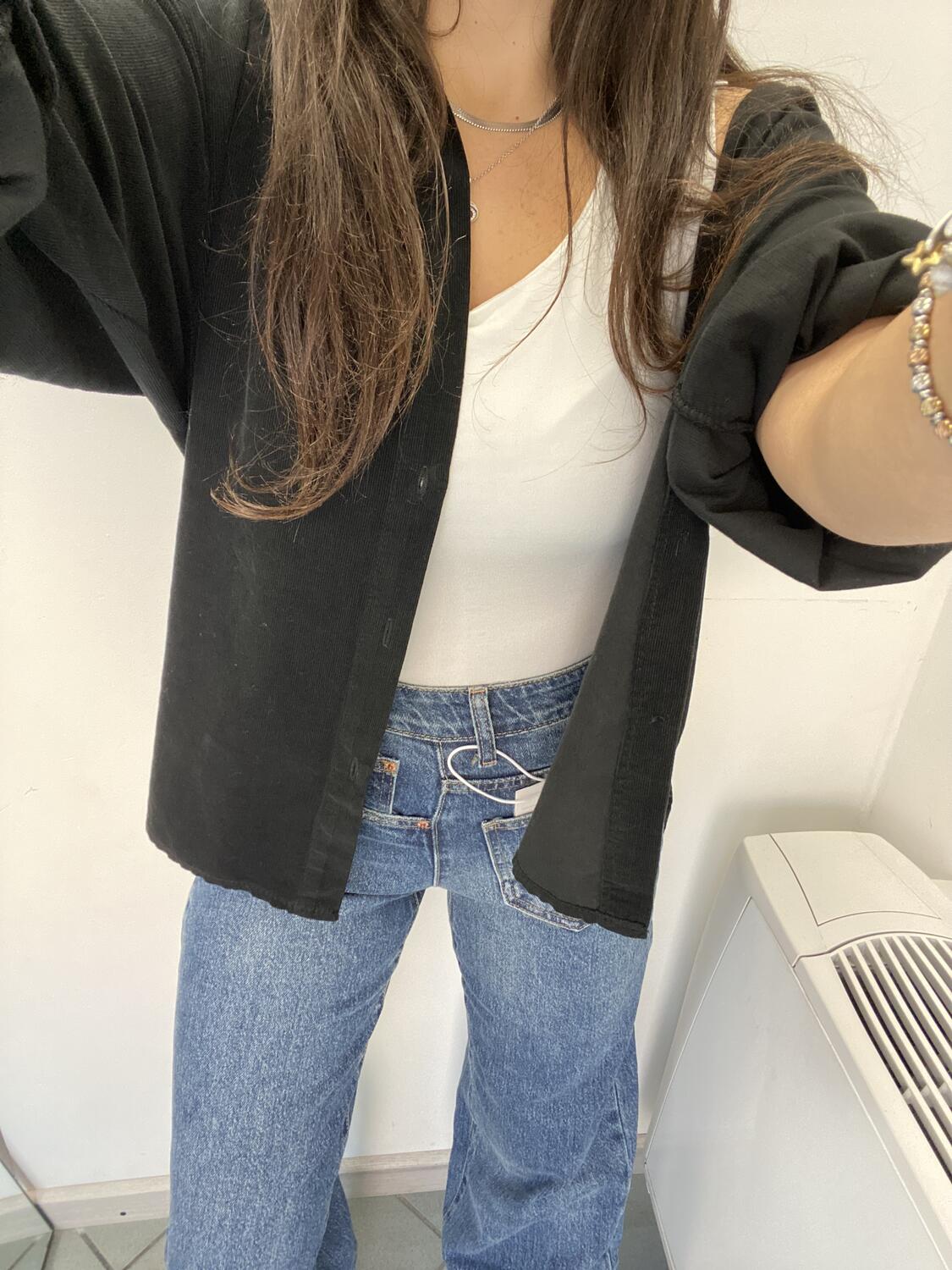 Camiciona a manica lunga a costine sottili in tessuto tipo velluto (leggero). Taglia unica, veste dalla 38 alla 48. Made in Italy. Composizione:100% cotone.