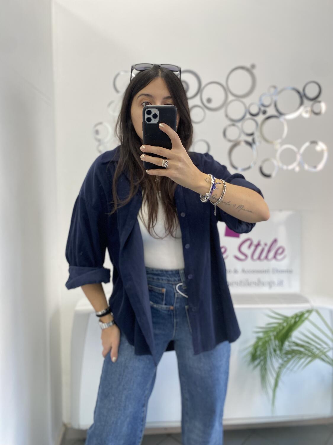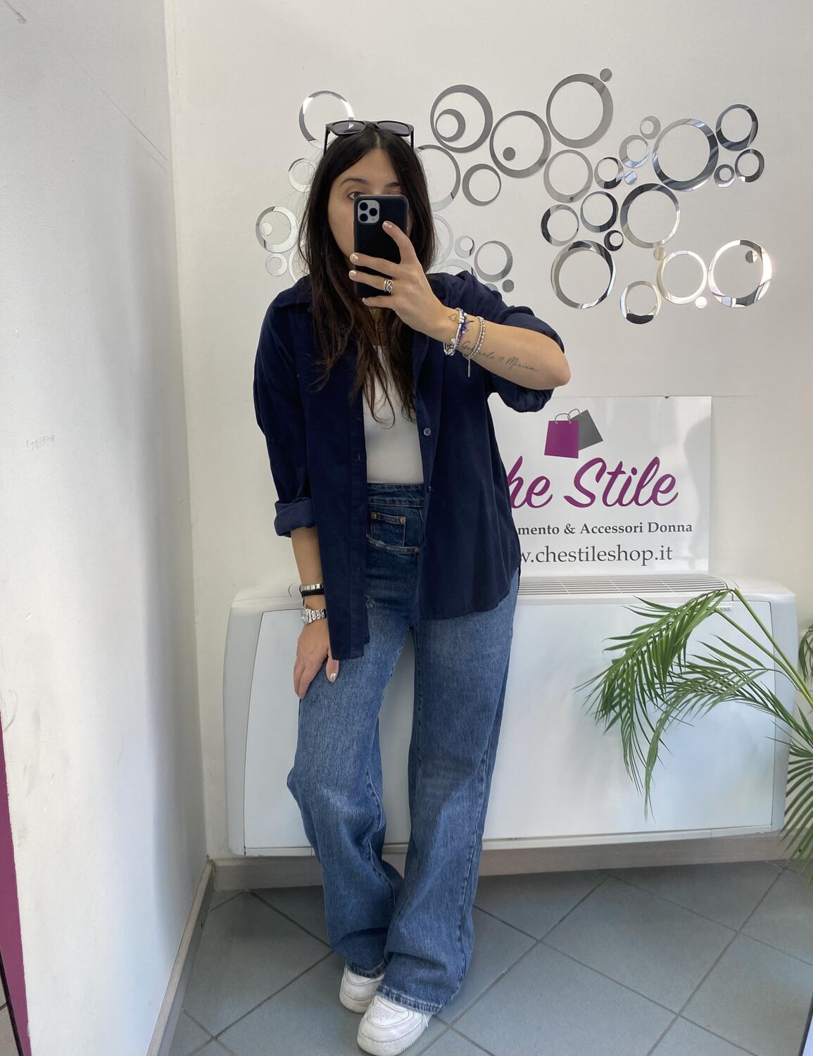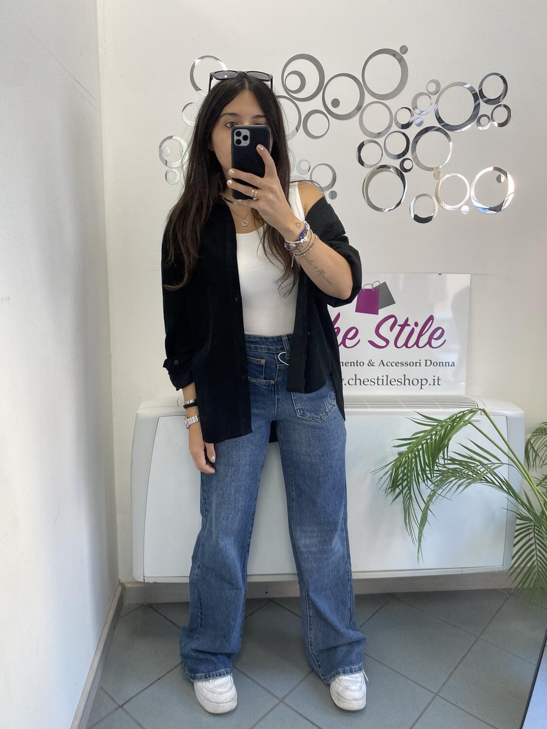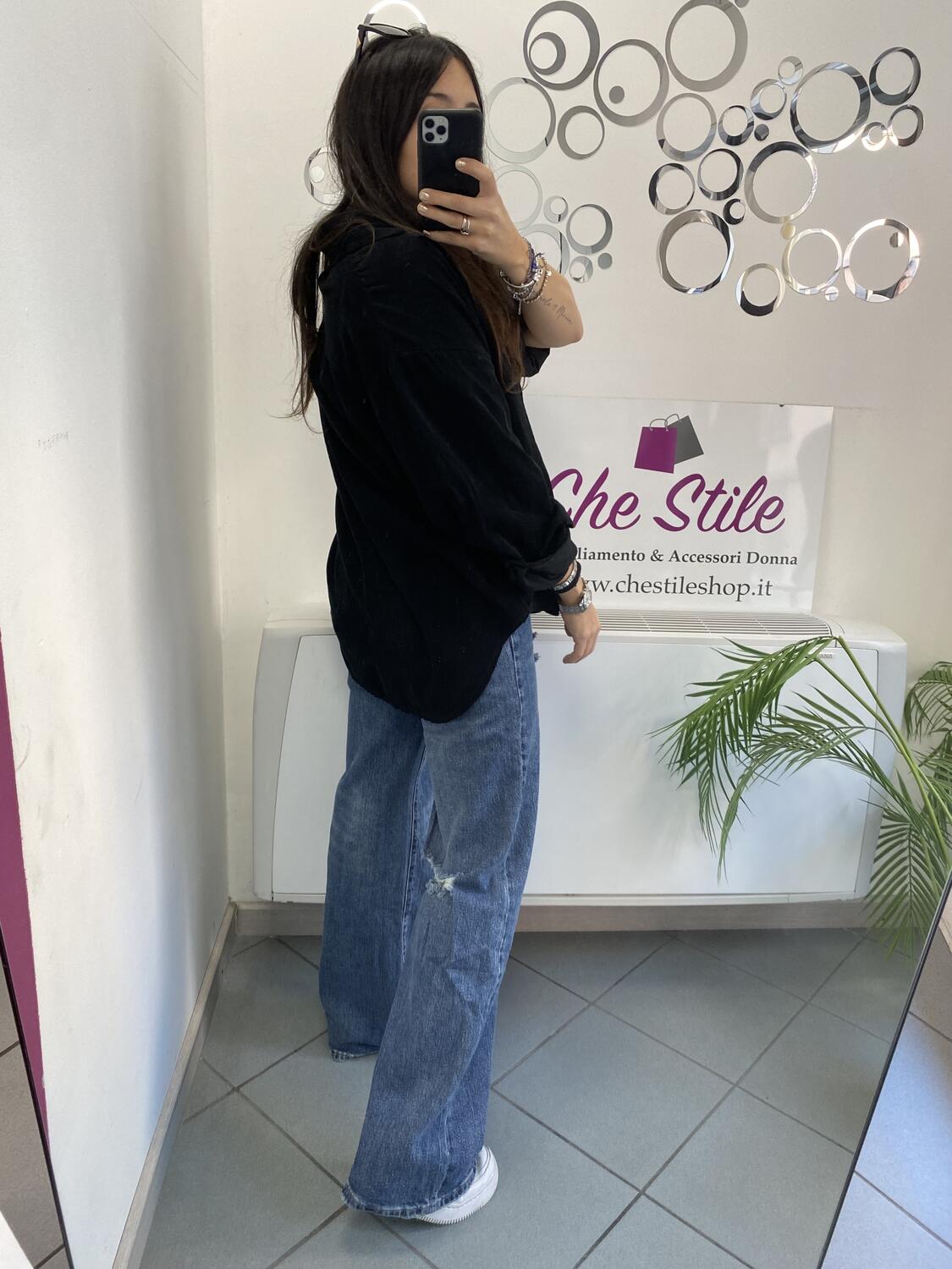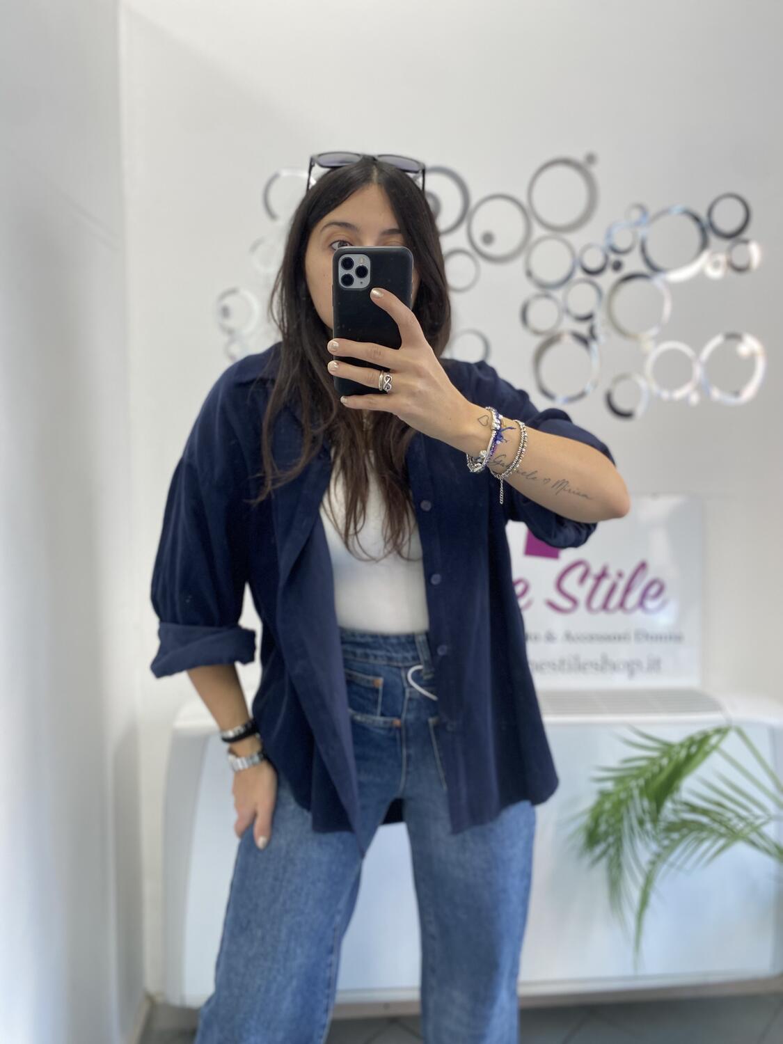 Camiciona a manica lunga a costine sottili in tessuto tipo velluto (leggero). Taglia unica, veste dalla 38 alla 48. Made in Italy. Composizione:100% cotone.