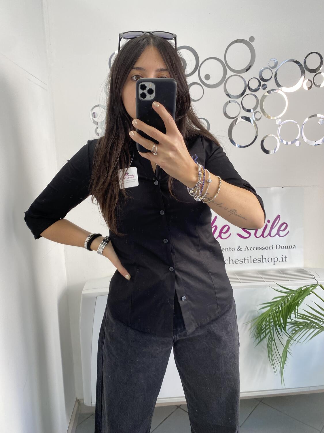 Camicia a manica lunga in cotone elasticizzato. Disponibile in taglia S (38/40), M (42/44) ed L (46). Made in Italy. Composizione: 95% cotone, 5% elastan.