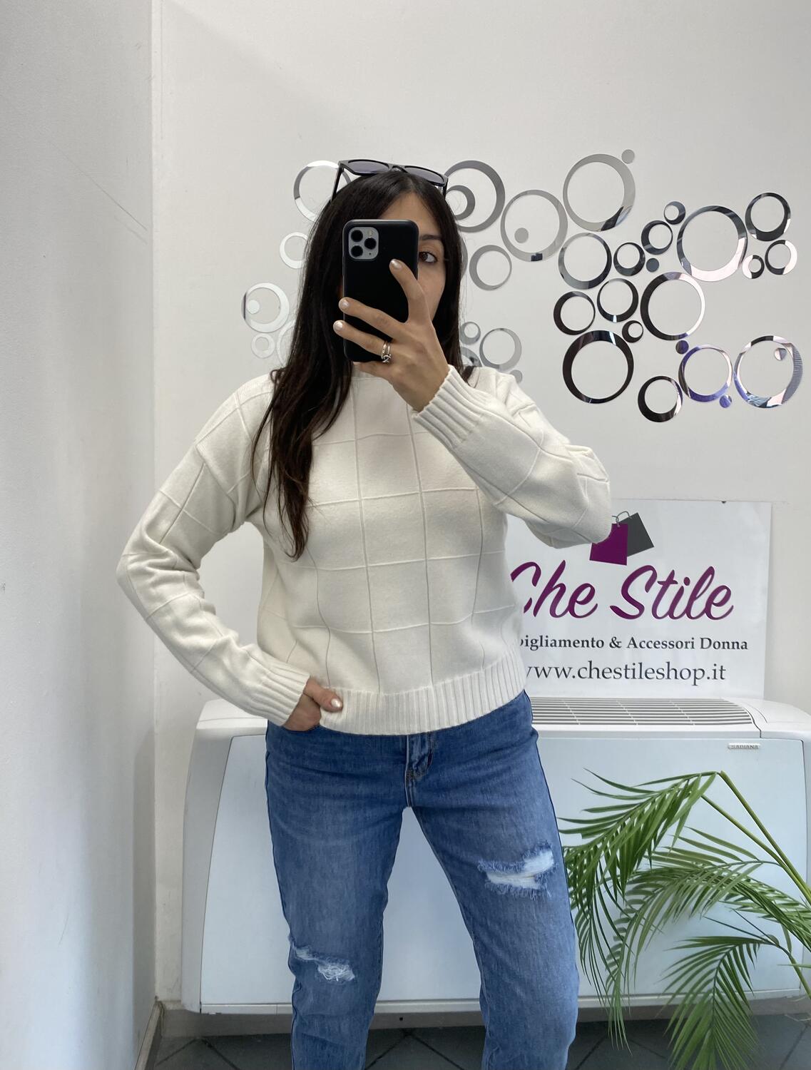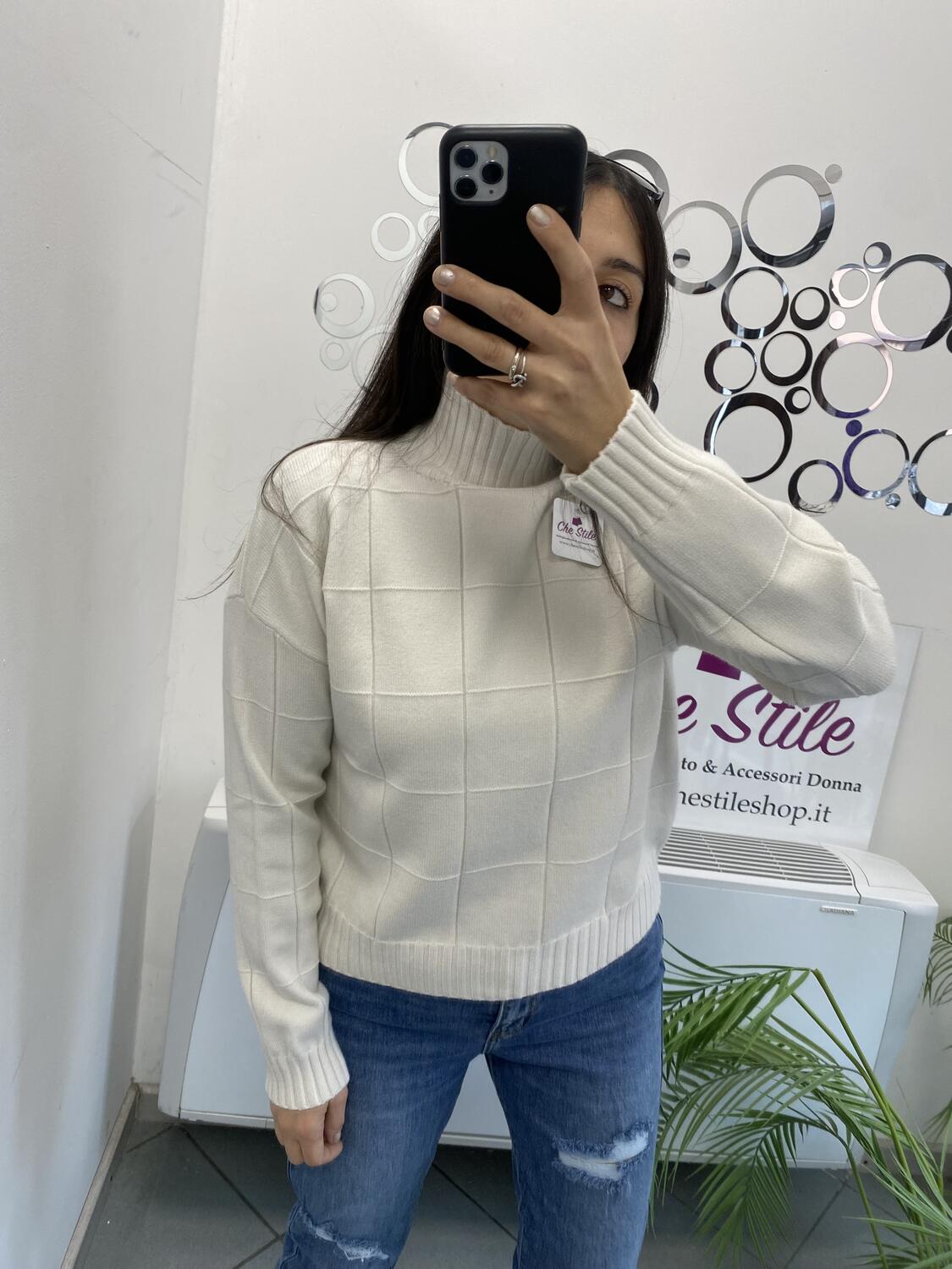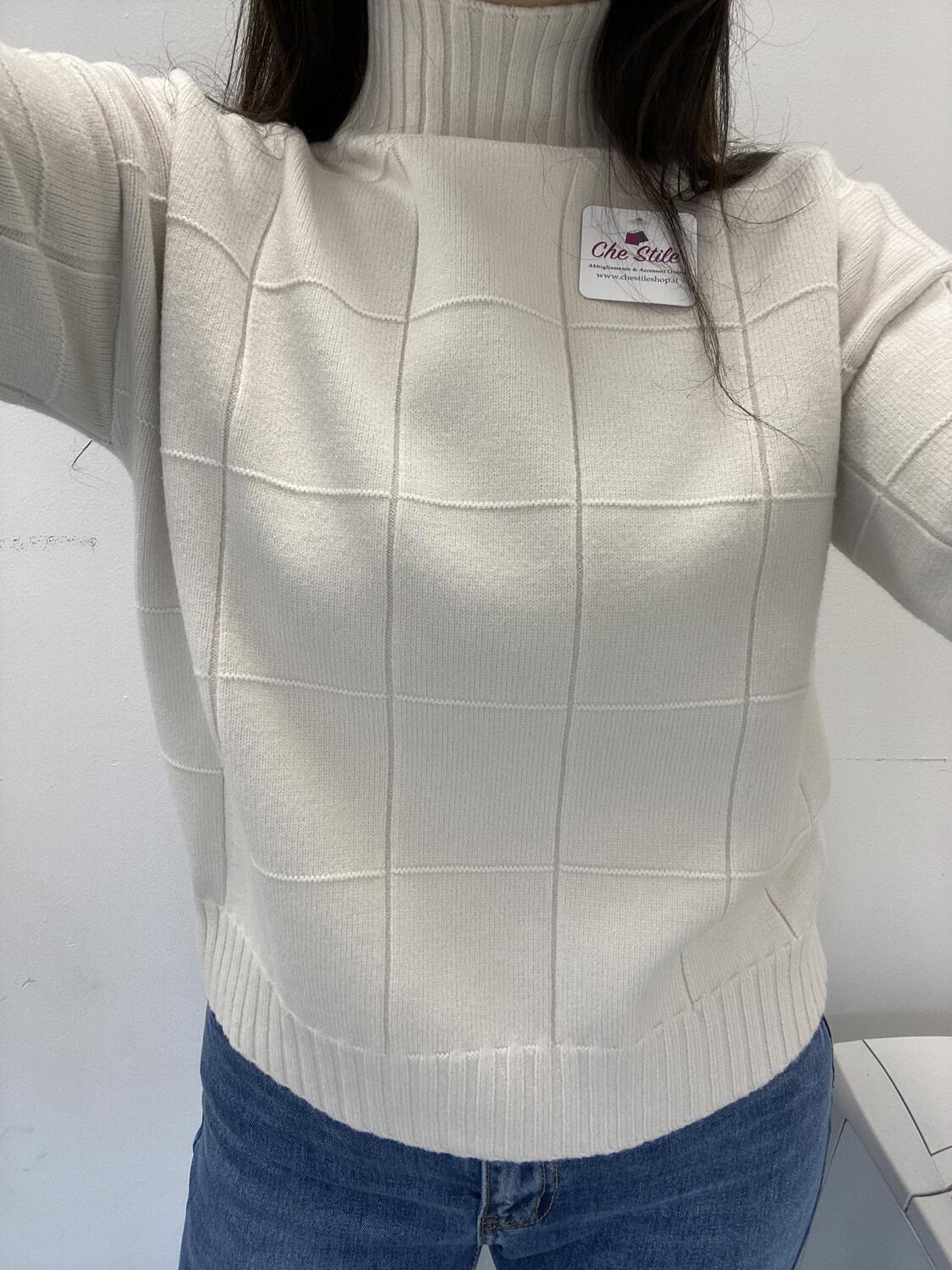 NOVITÀ Pull dolcevita a scatoletta trama scacchi in rilievo