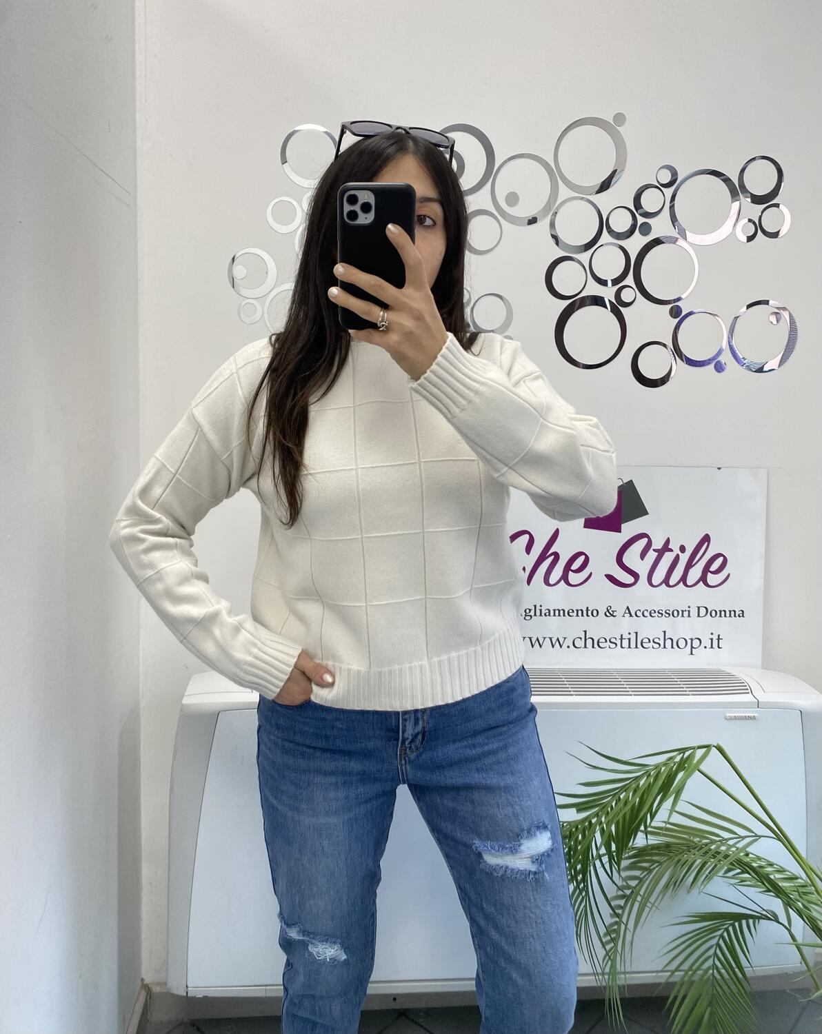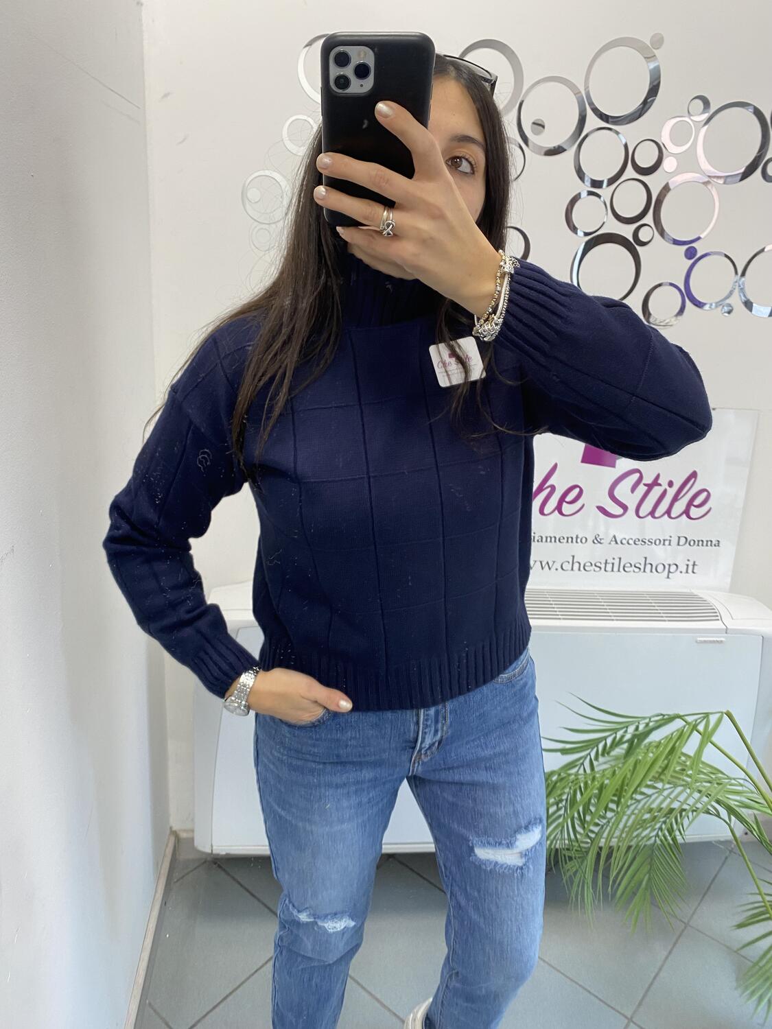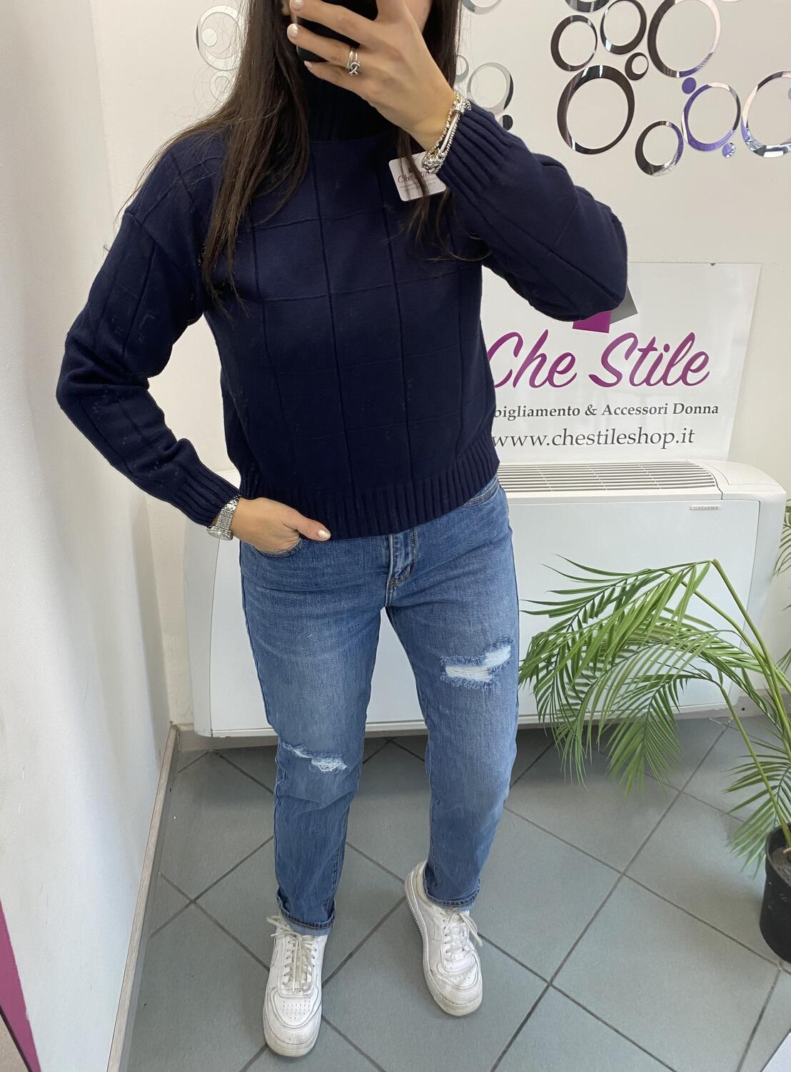 NOVITÀ Pull dolcevita a scatoletta trama scacchi in rilievo