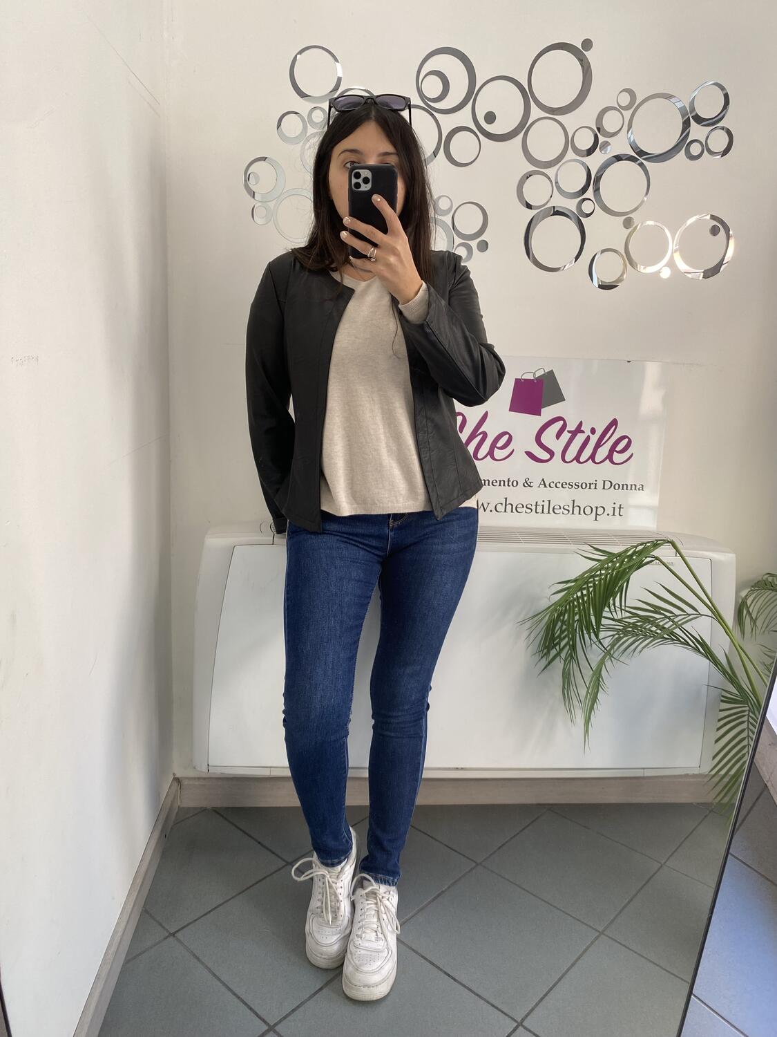 Eleonora è alta 160 cm, ha una seconda di seno e veste la taglia 42.