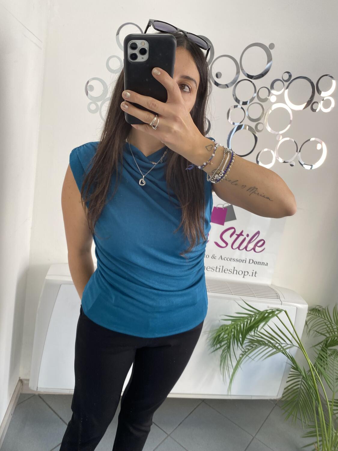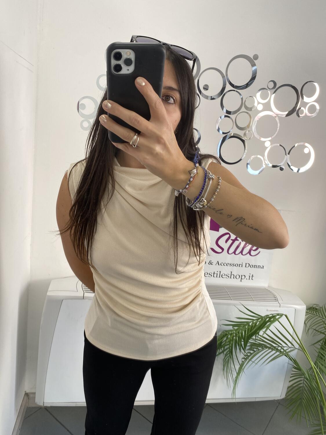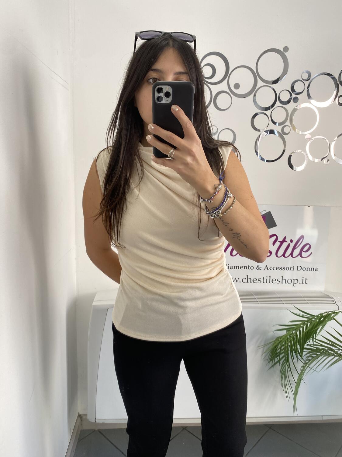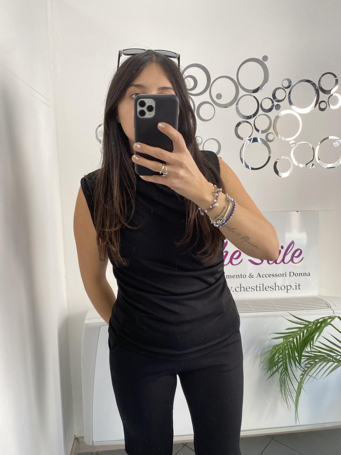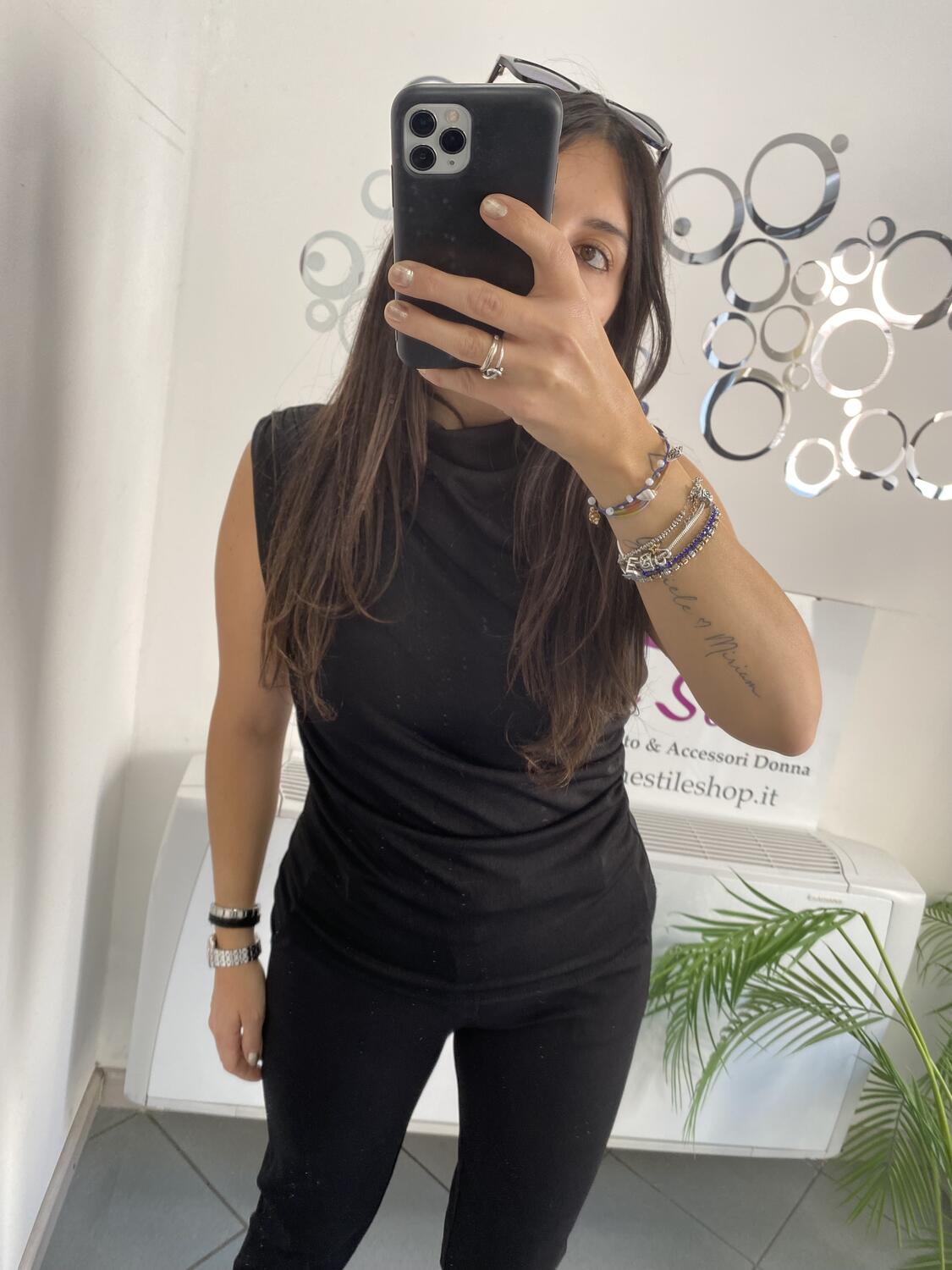 Eleonora è alta 160 cm, ha una seconda di seno e veste la taglia 42.